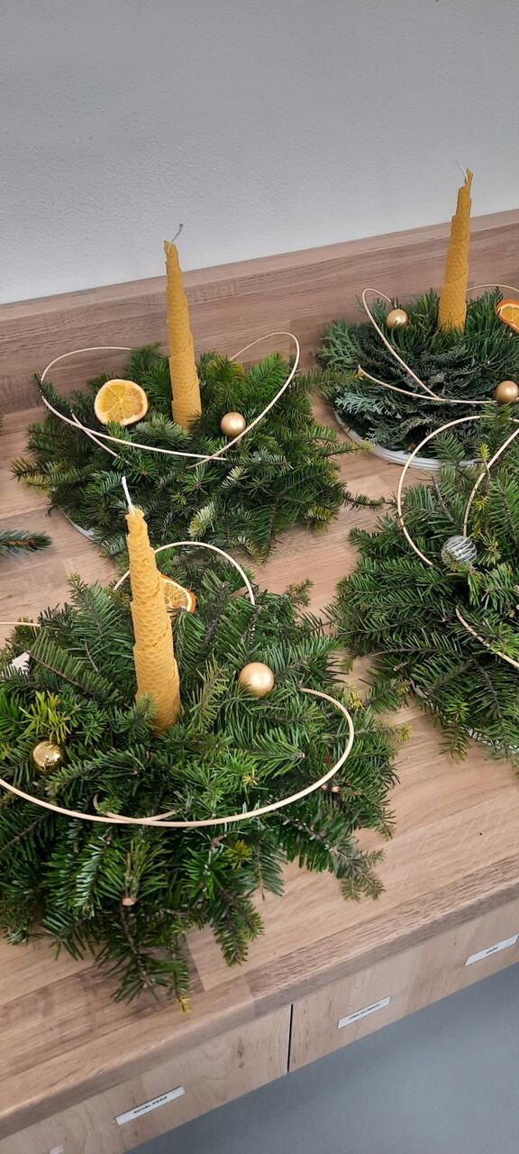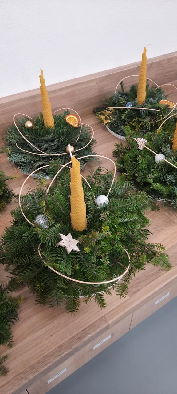 Svícny z chvojí a svíčky z mezistěn